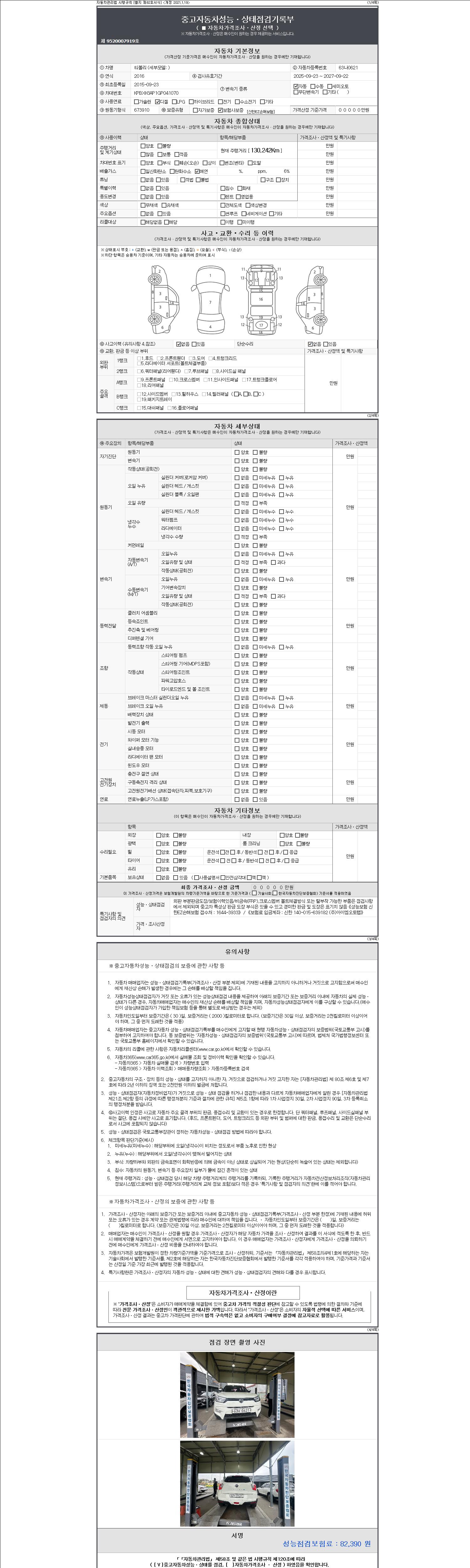- 사고유무 : 성능기록부 참조