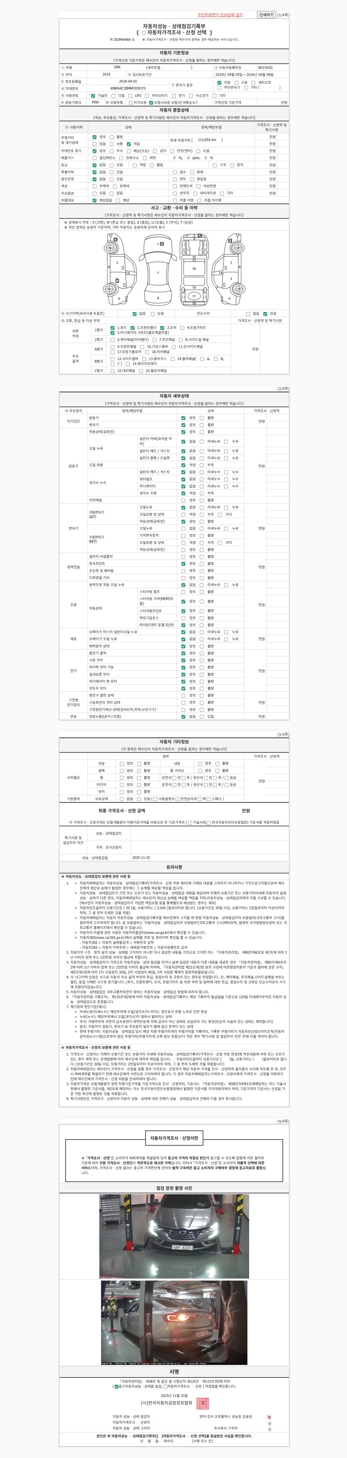 | 주행거리 | 113,856 km | 차량번호 | 58우4320 | 사고유무 | 성능기록부 참조 | 제시번호 | 제 2025156780 호 |