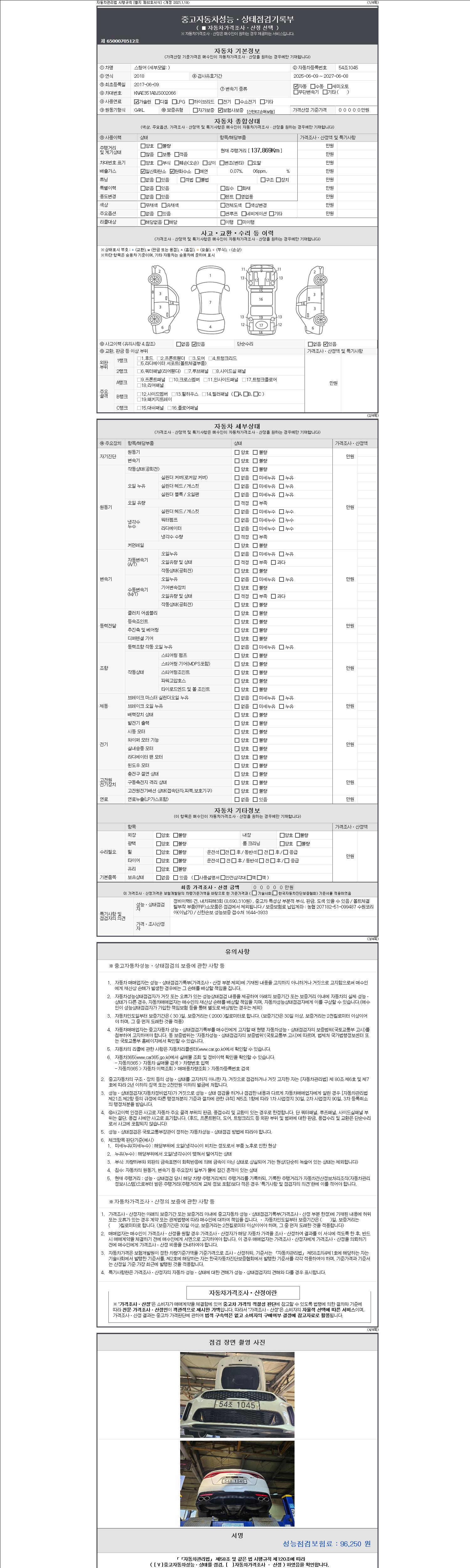 -중고자동차 매매업자를 통해 차량을 구입하실 경우 반드시 "중고자동차 성능, 상태점검 기록부"를 교뷰 받으셔야 하며, 매매업자는 반드시 의무 교부 하여야 압니다.