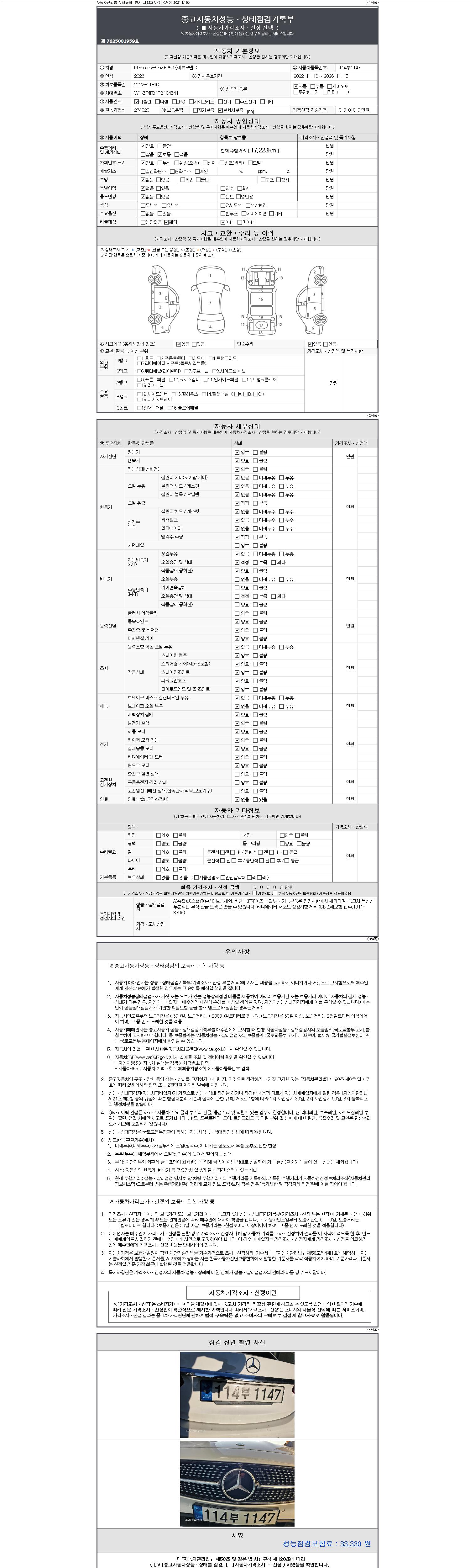 - 사고유무 : 성능기록부 참조