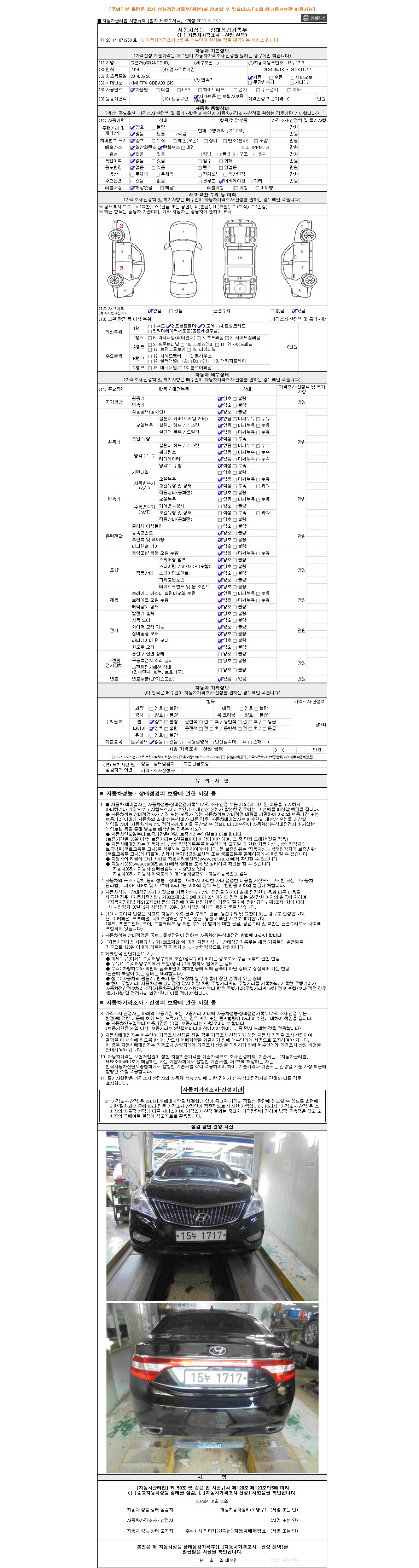 -중고자동차 매매업자를 통해 차량을 구입하실 경우 반드시 "중고자동차 성능, 상태점검 기록부"를 교뷰 받으셔야 하며, 매매업자는 반드시 의무 교부 하여야 압니다.