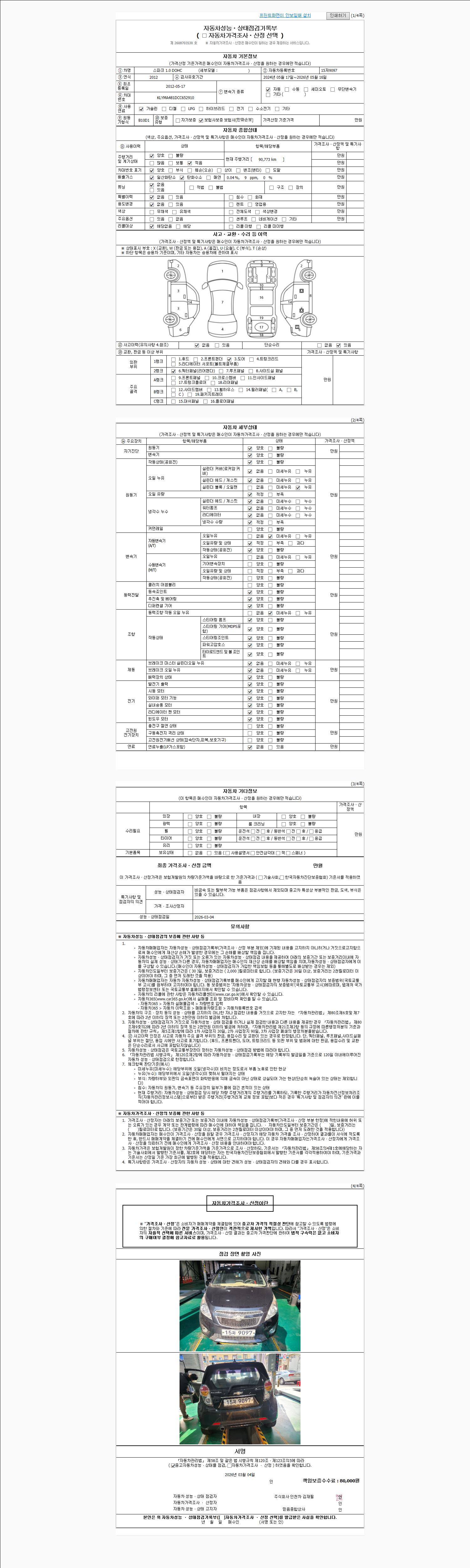 -중고자동차 매매업자를 통해 차량을 구입하실 경우 반드시 "중고자동차 성능, 상태점검 기록부"를 교뷰 받으셔야 하며, 매매업자는 반드시 의무 교부 하여야 압니다.
