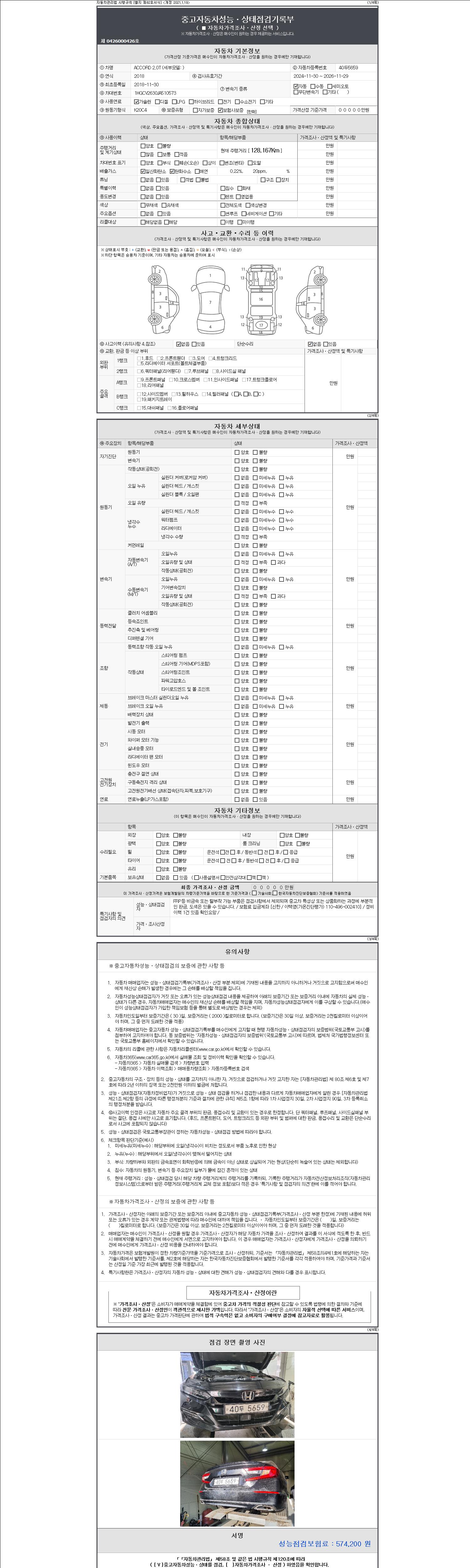 - 사고유무 : 성능기록부 참조