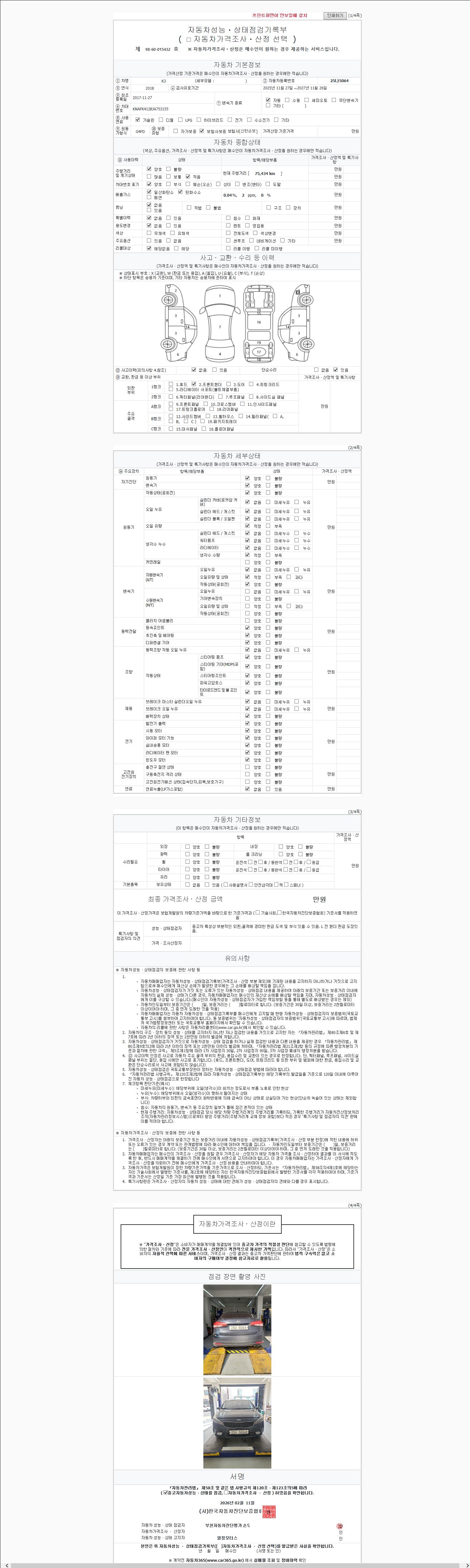 - 2. 차량 등록증이나 성능점검지 등을 상담자에게 요청및 확인하시고 사전에 미리 점검 하시기를 권유드립니다.