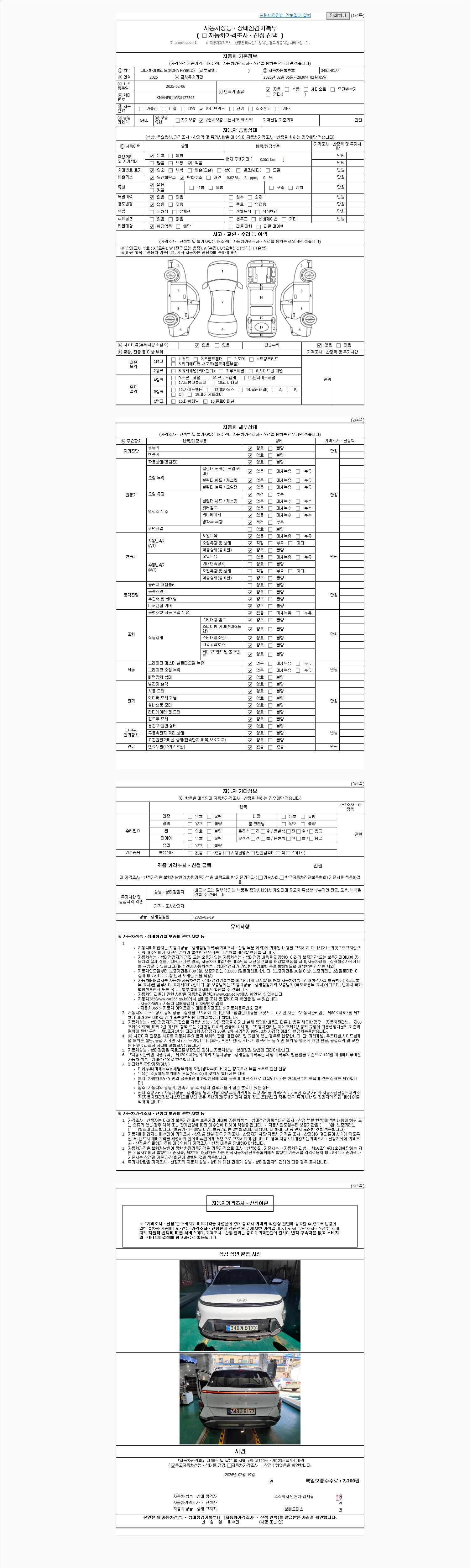 | 주행거리 | 8,561 km | 차량번호 | 348가8177 | 사고유무 | 성능기록부 참조 | 제시번호 | 제 2026008851 호 |