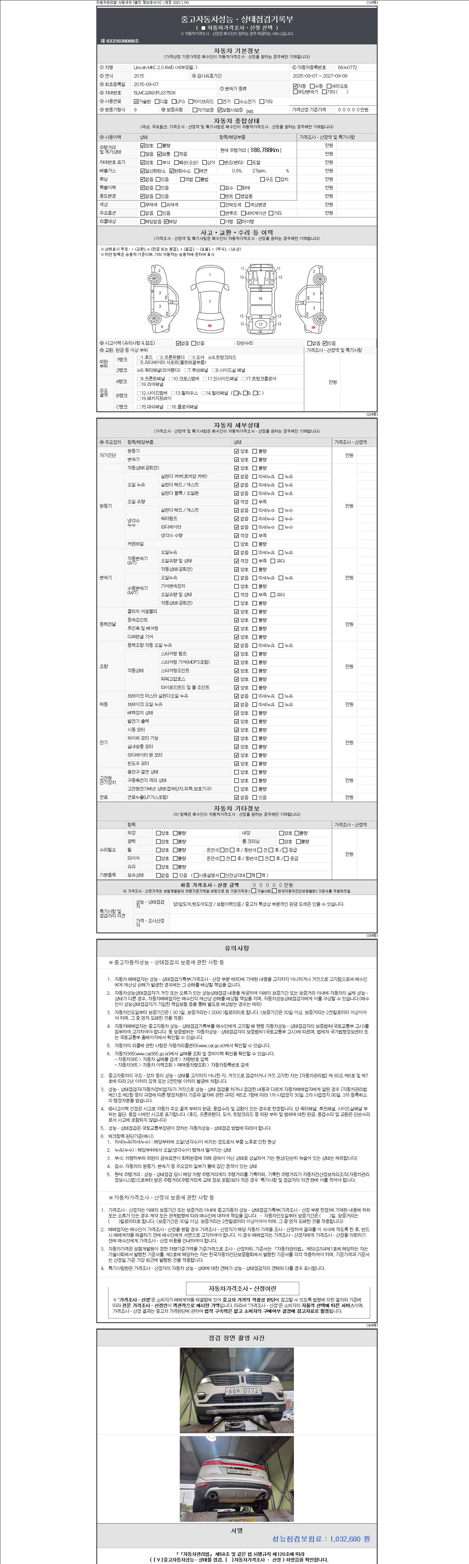 - 2. 차량 등록증이나 성능점검지 등을 상담자에게 요청및 확인하시고 사전에 미리 점검 하시기를 권유드립니다.