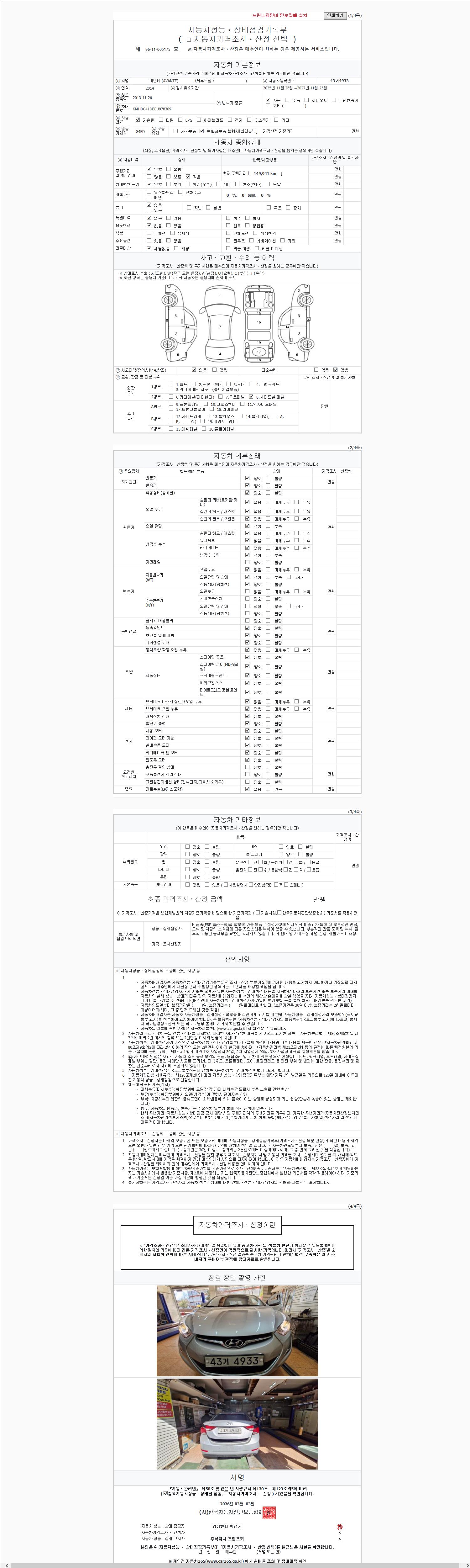 - 2. 차량 등록증이나 성능점검지 등을 상담자에게 요청및 확인하시고 사전에 미리 점검 하시기를 권유드립니다.