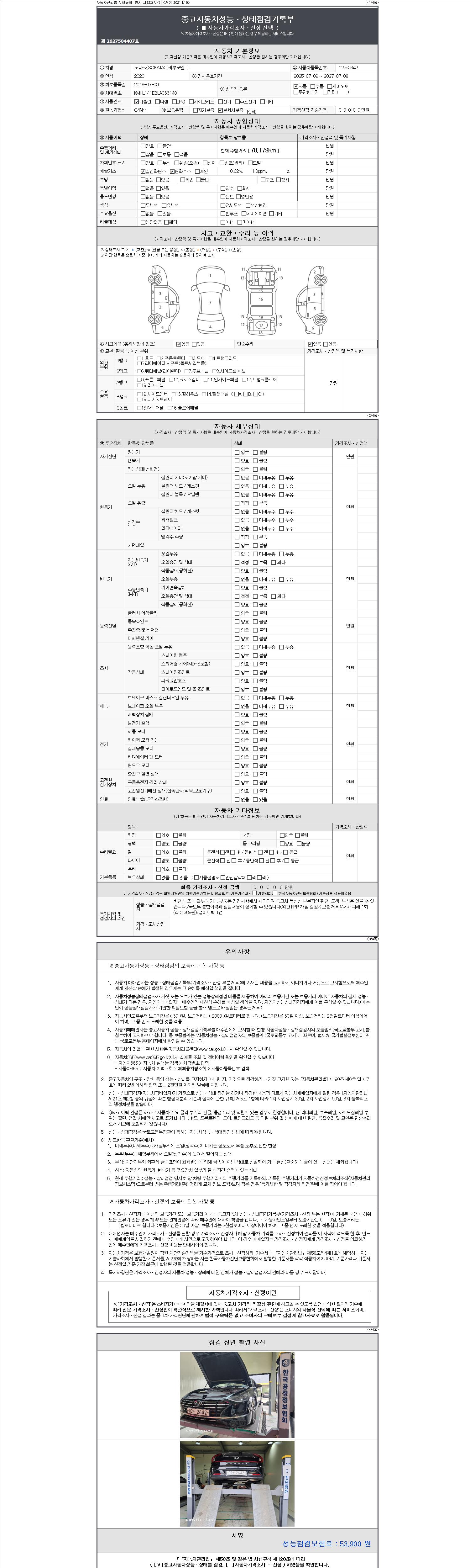 - 2. 차량 등록증이나 성능점검지 등을 상담자에게 요청및 확인하시고 사전에 미리 점검 하시기를 권유드립니다.