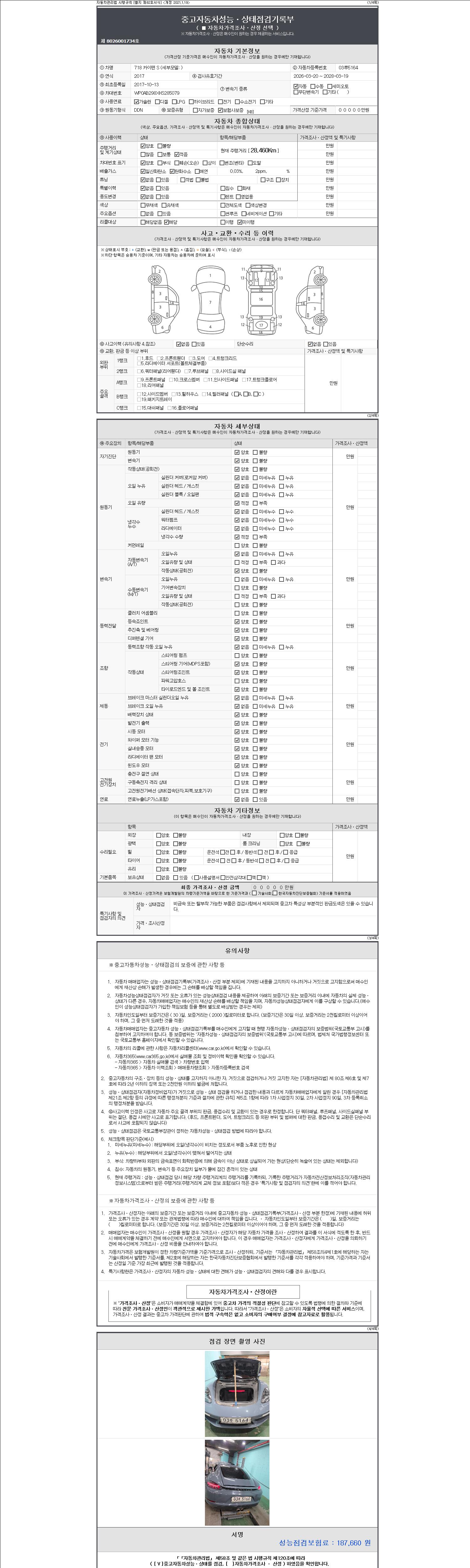 - 사고유무 : 성능기록부 참조
